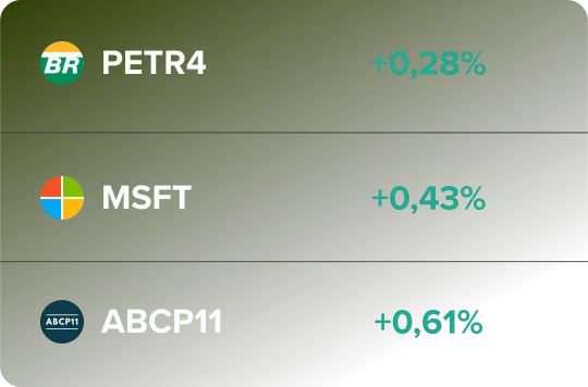 Acesse recomendações de ações por uma das mais conceituadas casas de análise do Brasil. Ao final dos 3 meses, os alunos terão 50% de desconto para manter a assinatura do relatório.