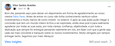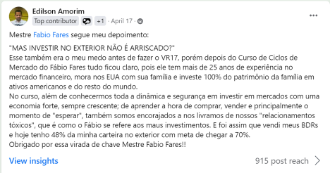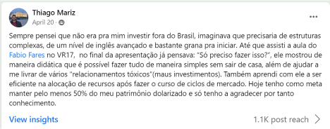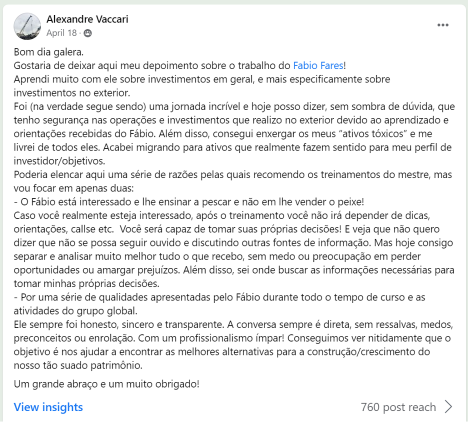 O Fábio é, para mim, o especialista brasileiro que mais entende sobre o universo de investimentos no exterior, e olha que eu conheço muita gente desse meio.